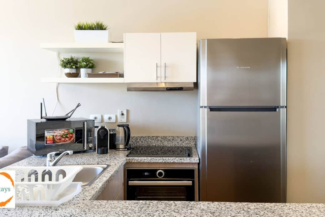 Kaffeemaschine, Küchenutensilien, Küchenherd, Kochnische, Mikrowelle, Backofen, Kühlschrank